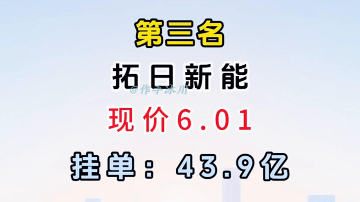 ·第三名:拓日新能,现价6.01,挂单:43.9亿。
